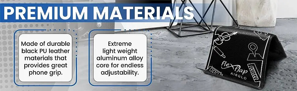 The Flex Flap Phone & Tablet Holder simplifies hands-free device use, letting you watch movies, navigate GPS, or follow recipes without holding your phone or tablet, perfect for flights, car trips, or kitchen prep. Its premium black leather exterior ensures a secure grip, while the adjustable aluminum core allows precise positioning to suit any viewing angle, enhancing comfort during extended use. Compatible with any phone or tablet, including cases, it adapts to iPhones, iPads, Android devices, and more, offering unmatched versatility. The sleek, fold-flat design slips effortlessly into bags or pockets, making it a must-have travel companion. Beyond devices, it organizes cookbooks, sheet music, or even purses, adding practicality to every setting, from dining out to creative projects.