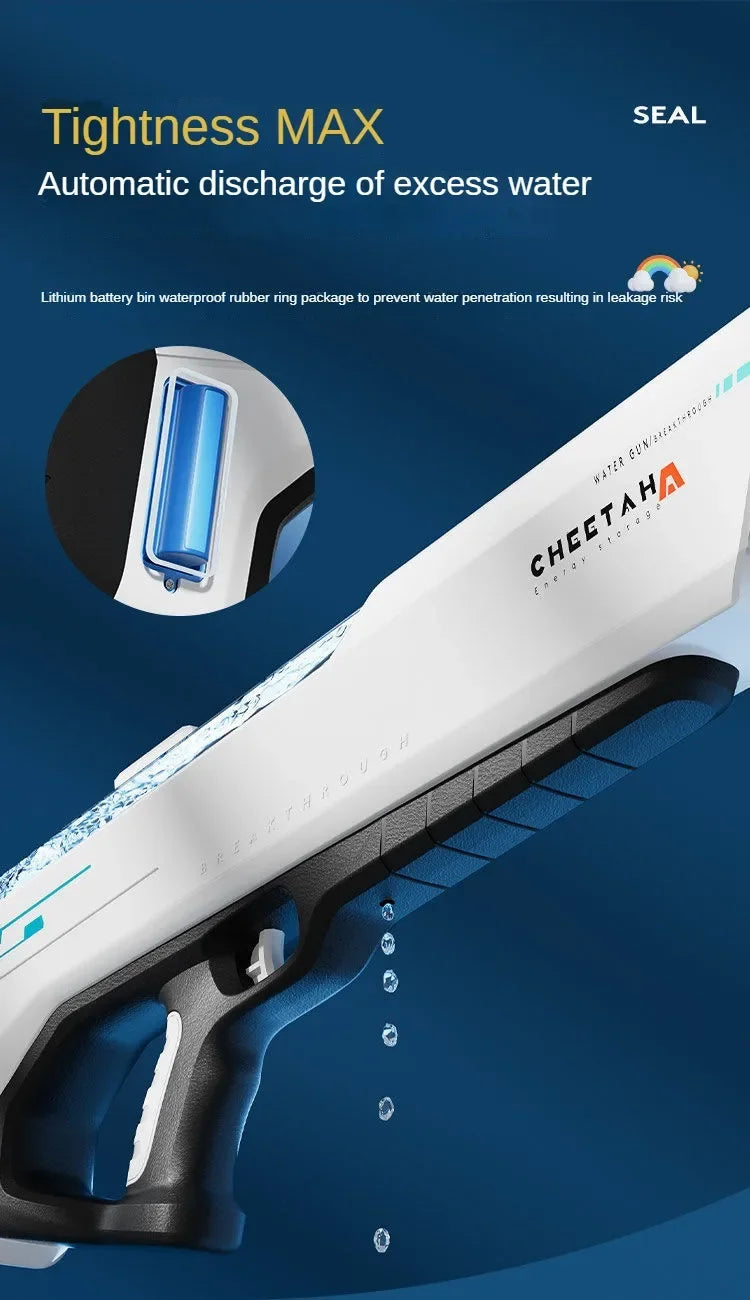 Transform your water fights with the High Pressure Electric Water Gun, a powerful and safe solution for dynamic outdoor fun. With its automatic high-pressure streams, lithium battery efficiency, and sci-fi-inspired design, this CE-certified blaster is perfect for teens and adults aged 14+. Elevate your summer adventures with this durable, high-tech water gun, crafted for thrilling, safe, and unforgettable battles.